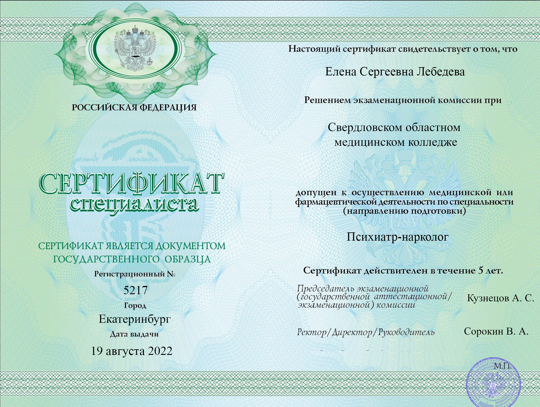 Елена Сергеевна Лебедева врач нарколог клиники доктора Стукаловой в Невинномысске